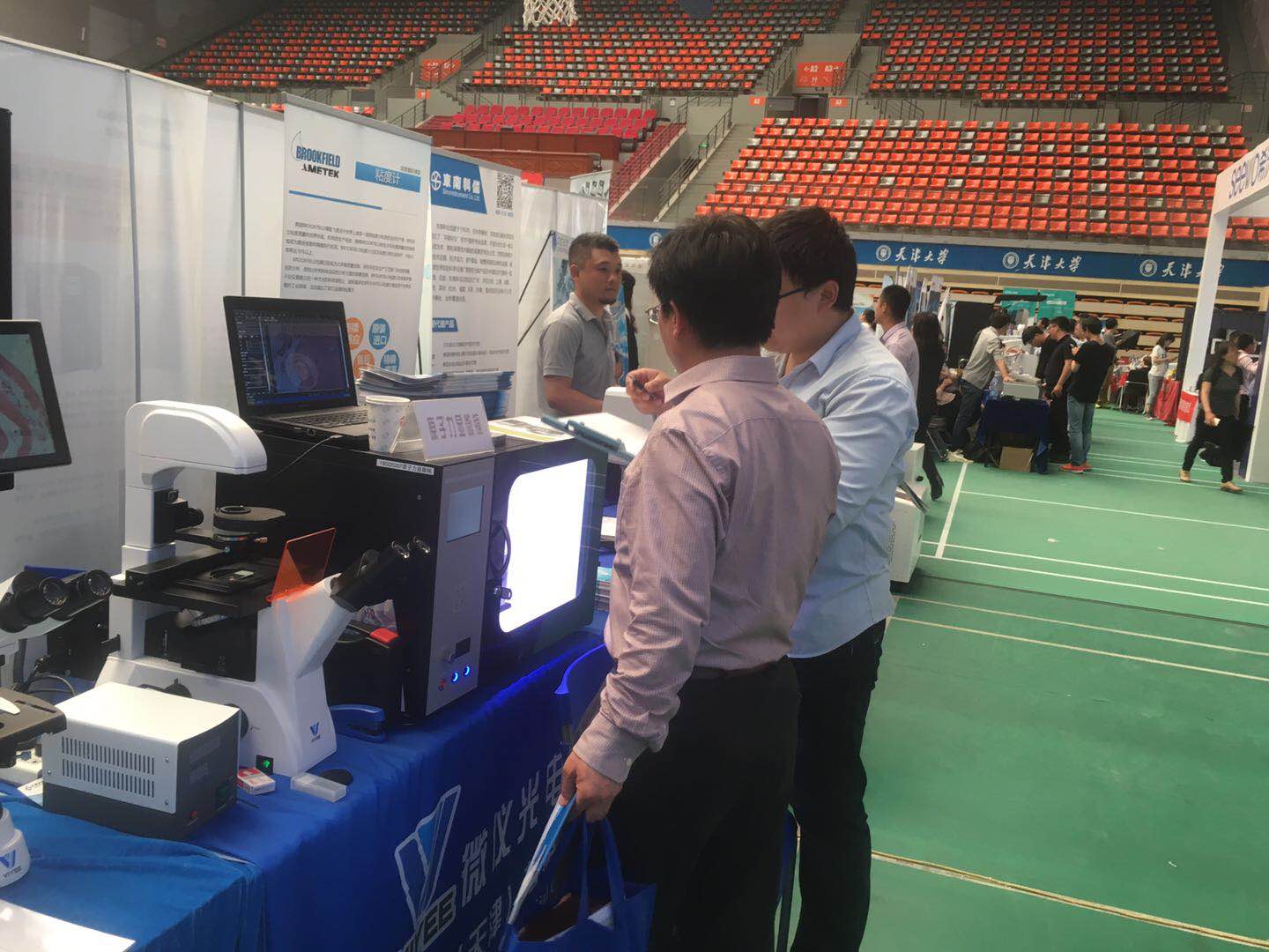 天津大學第二十三屆儀器設備展示會于2019年5月10日至5月11日在天津大學衛津路校區體育館圓滿舉行,本次展會云集眾多出名廠商參與,天津微儀光學儀器有限公司攜多款顯微鏡產品亮相展館,展位人氣十足,吸引了眾多觀眾到場參觀體驗。